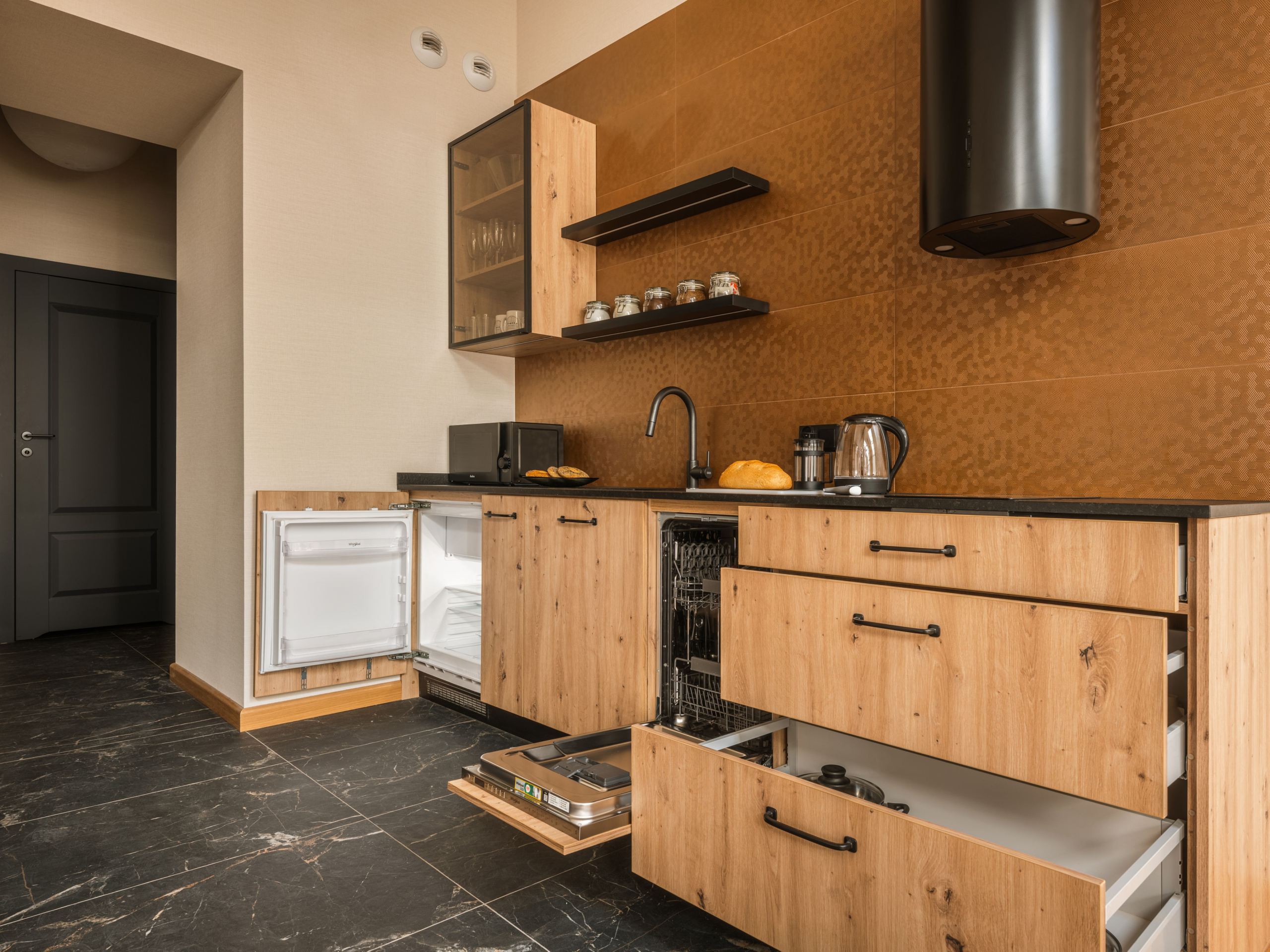 - W pełni wyposażoną kuchnię umożliwiającą wygodne, domowe posiłki