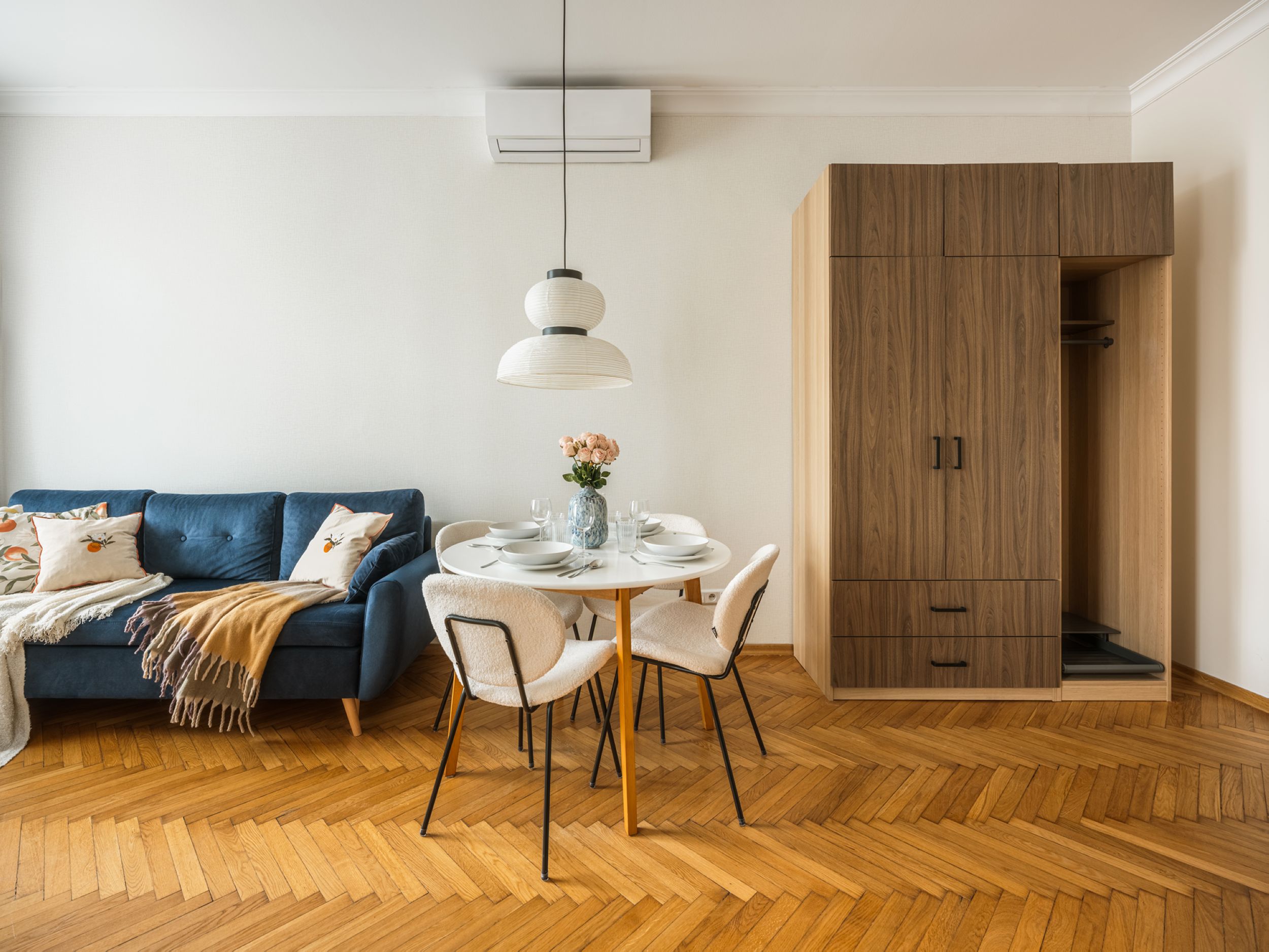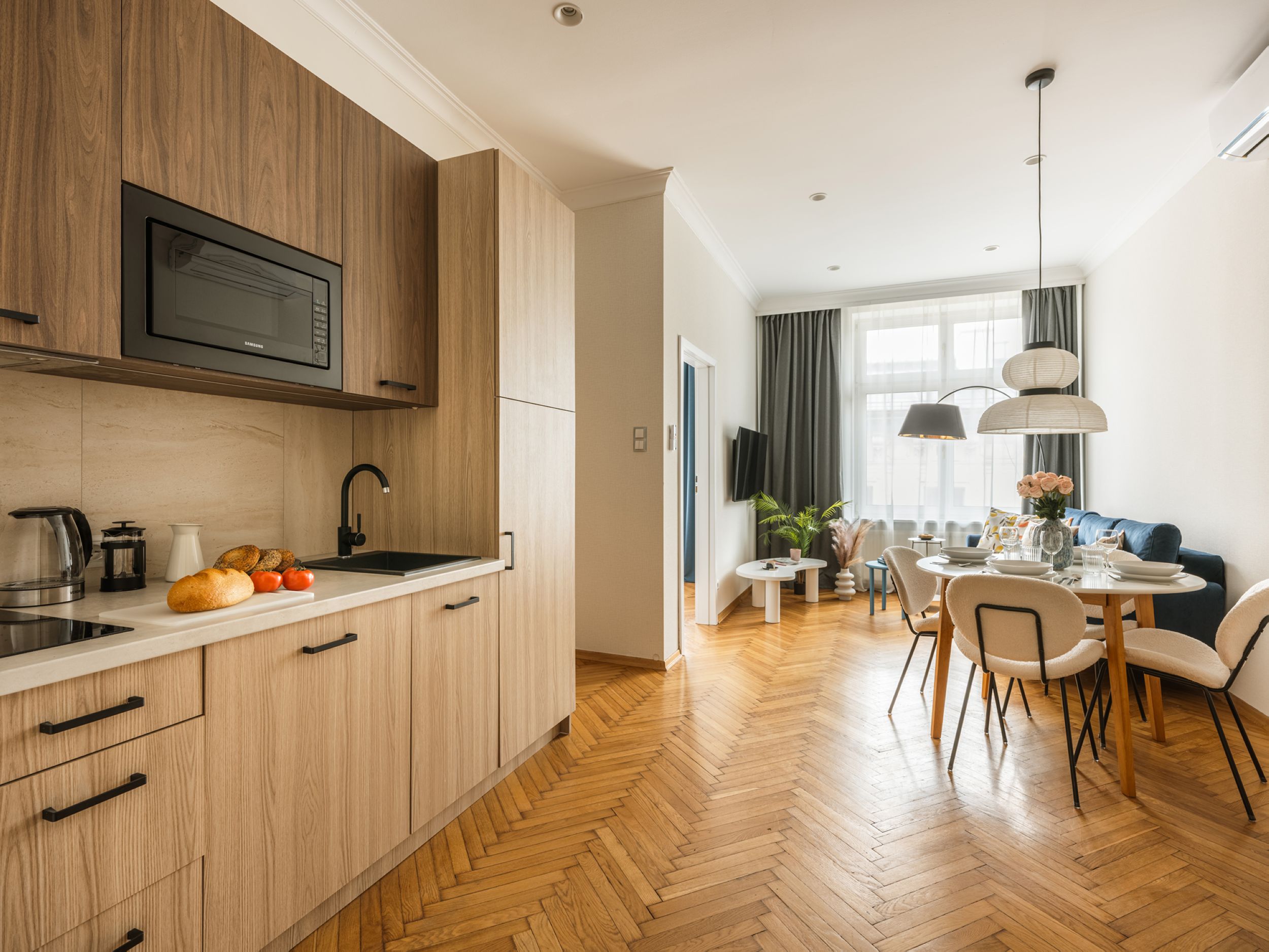 Ten elegancki apartament w nowoczesnym stylu oferuje jedną pięknie urządzoną sypialnię oraz przytulny salon, zapewniając komfort dla par, rodzin lub małych grup. W pełni wyposażony i starannie zaprojektowany, posiada klimatyzację, która gwarantuje przyjemny pobyt o każdej porze roku. Stylowy wystrój, praktyczne udogodnienia oraz funkcjonalny układ tworzą przyjazną atmosferę, idealną do odpoczynku po dniu spędzonym na odkrywaniu tętniącego życiem centrum miasta. To doskonały wybór dla gości ceniących zarówno komfort, jak i świetną lokalizację.