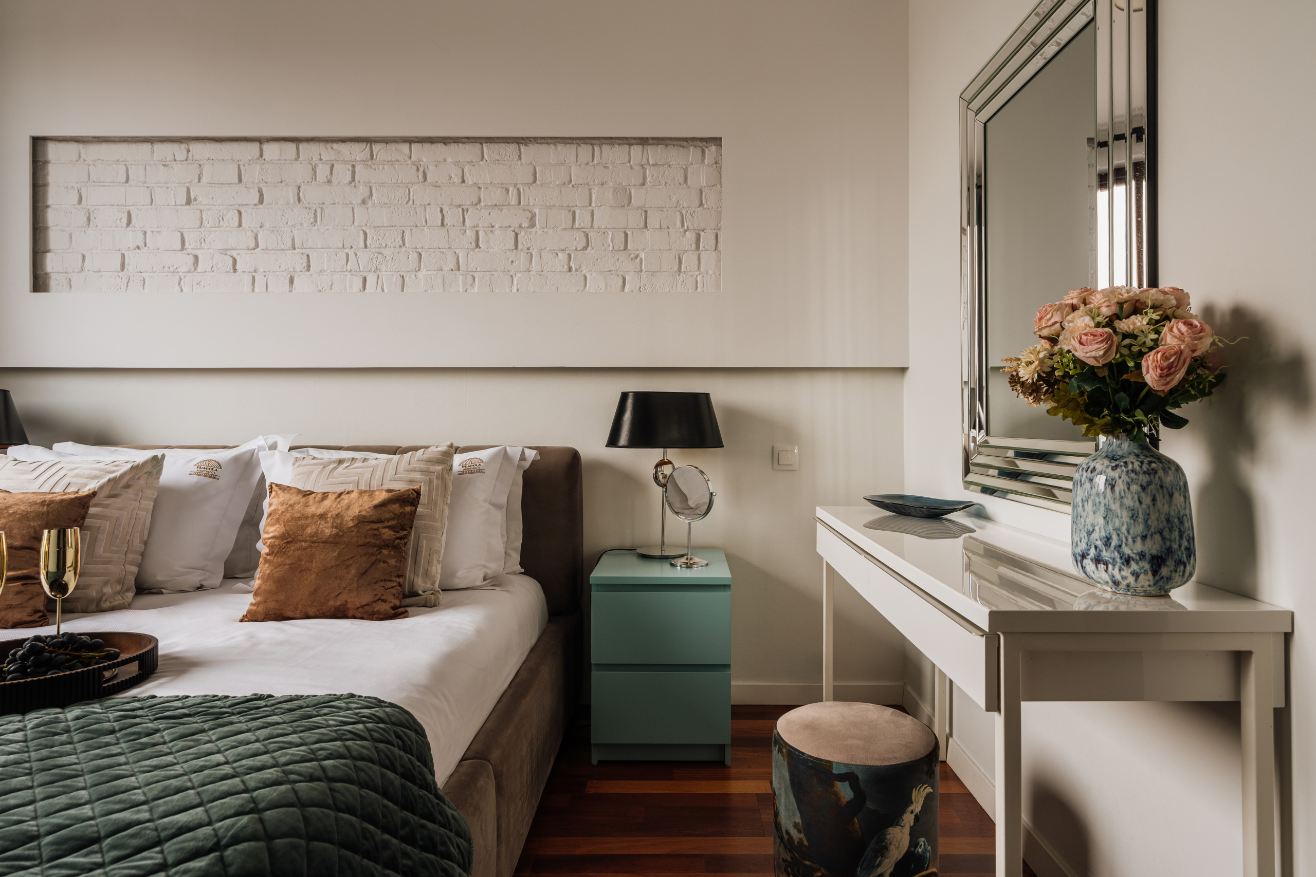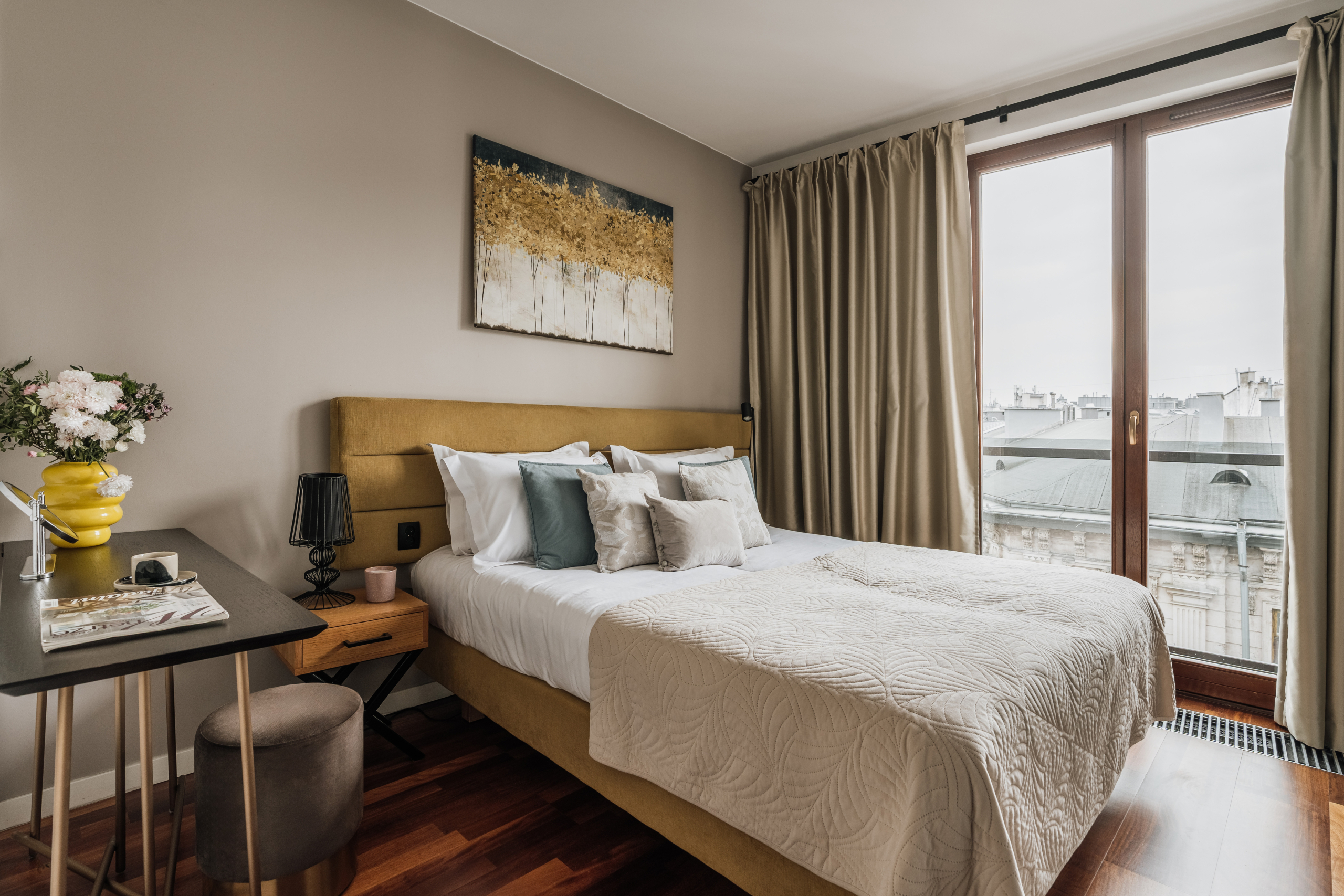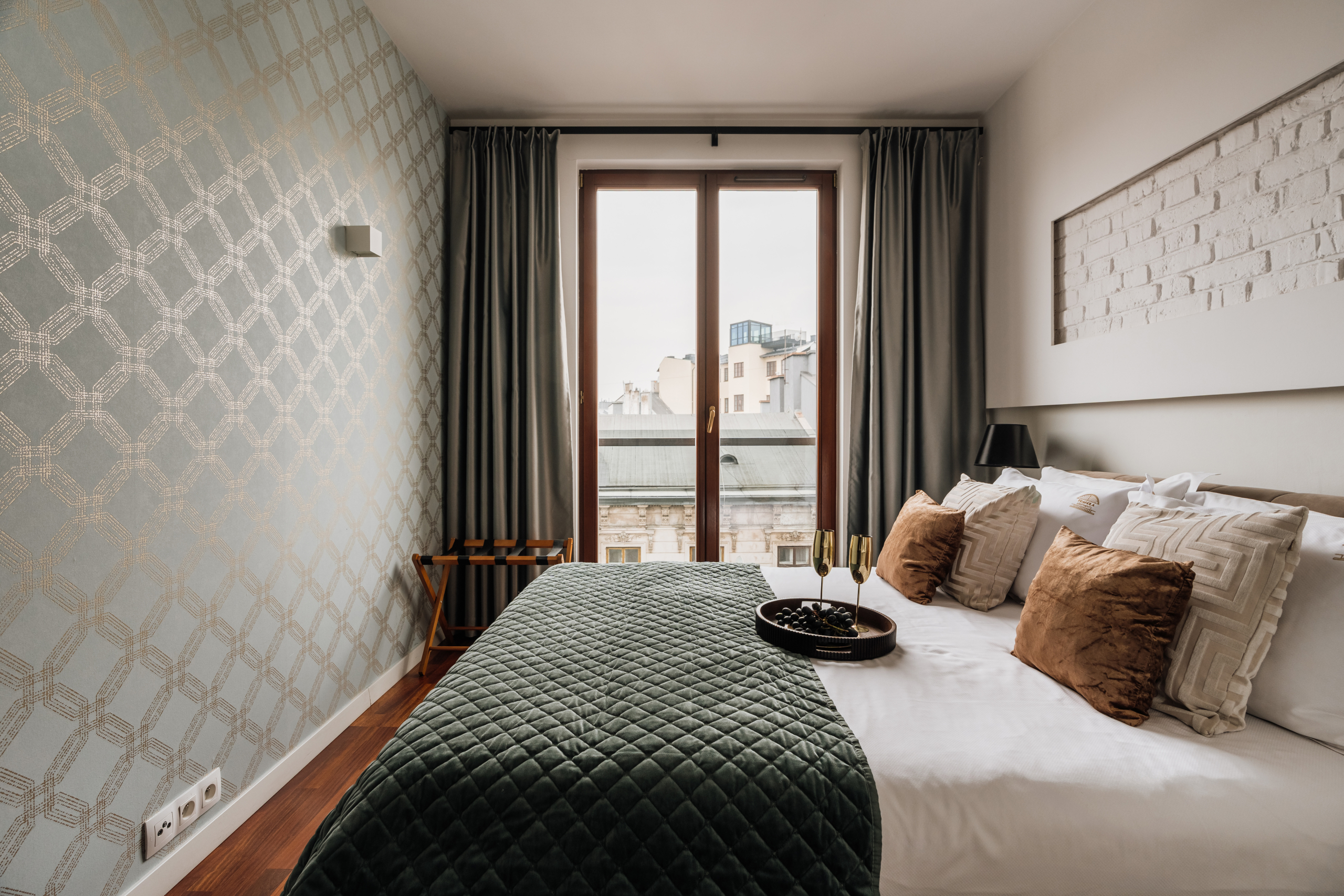 Apartament Golden Globe z dwiema sypialniami i balkonem to nowoczesny i elegancki apartament. Idealny dla osób odwiedzających Kraków, które cenią doskonałą lokalizację oraz wysoki standard. Zapewnia on poczucie niezależności i swobody, pozwalając gościom w pełni doświadczyć ducha miasta. Dwie łazienki, balkon oraz w pełni wyposażona kuchnia gwarantują komfortowy pobyt w samym sercu Krakowa.