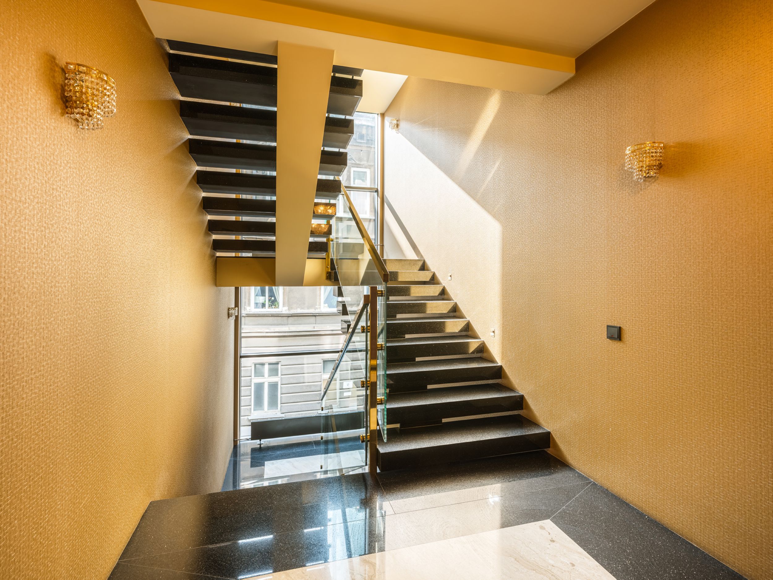 - Das Gebäude befindet sich im Stadtzentrum, wo der Verkehr und die Hektik zu hören sind,