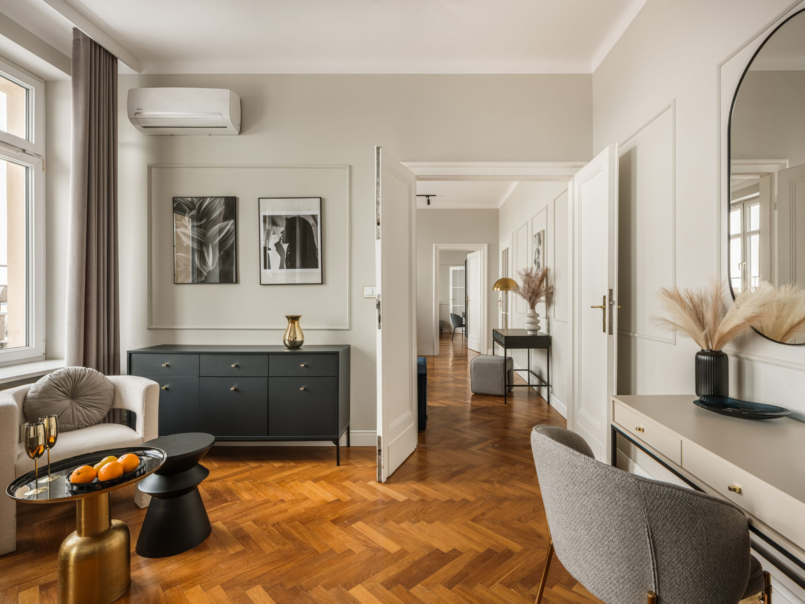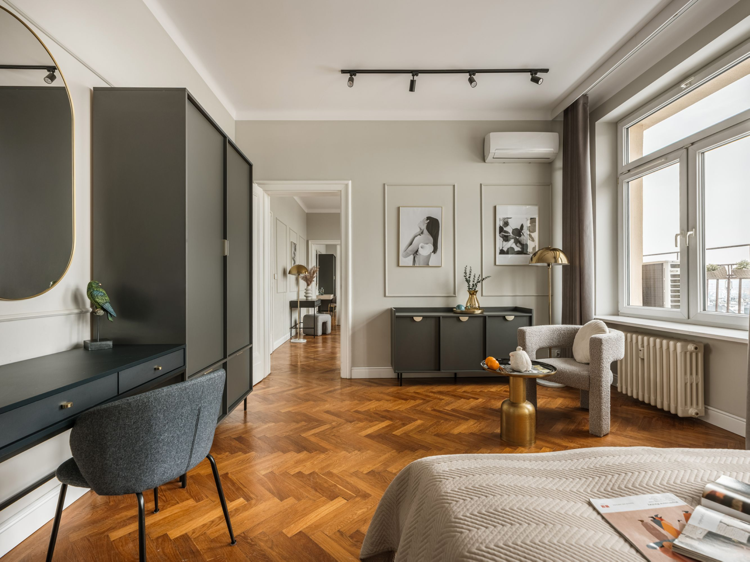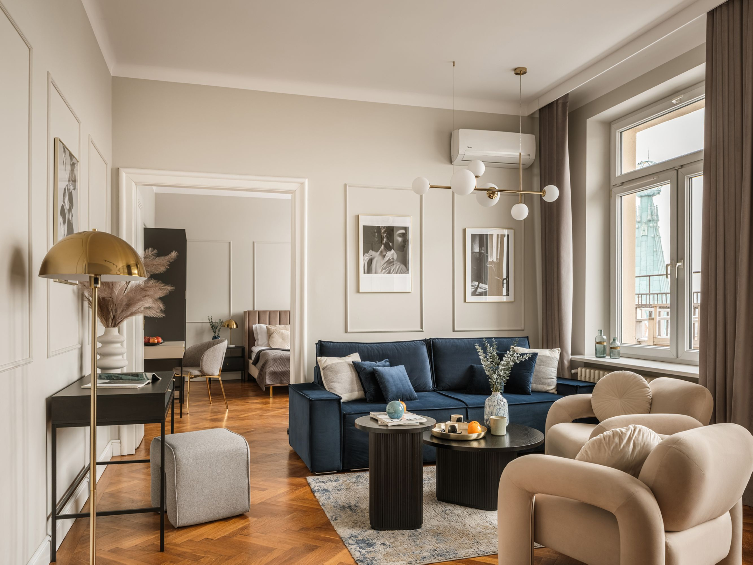 Podziwiaj zapierające dech w piersiach zachody słońca z tego wyjątkowego apartamentu z dwiema sypialniami, z którego roztacza się widok na charakterystyczne dachy Krakowa. Ciesz się rozległą panoramą Królewskiego Miasta, relaksując się w jasnej, komfortowej i starannie zaprojektowanej przestrzeni.