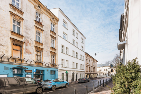 Lucky 13 is ideal for a larger group of friends. Our spacious apartment will accommodate as many as 13 people! To make the stay comfortable for everyone the apartment includes two bathrooms with showers and a living room with a large table to spend time together. The apartment is located in the heart of Krakow, in a tenement house at 4 Koletek Street.