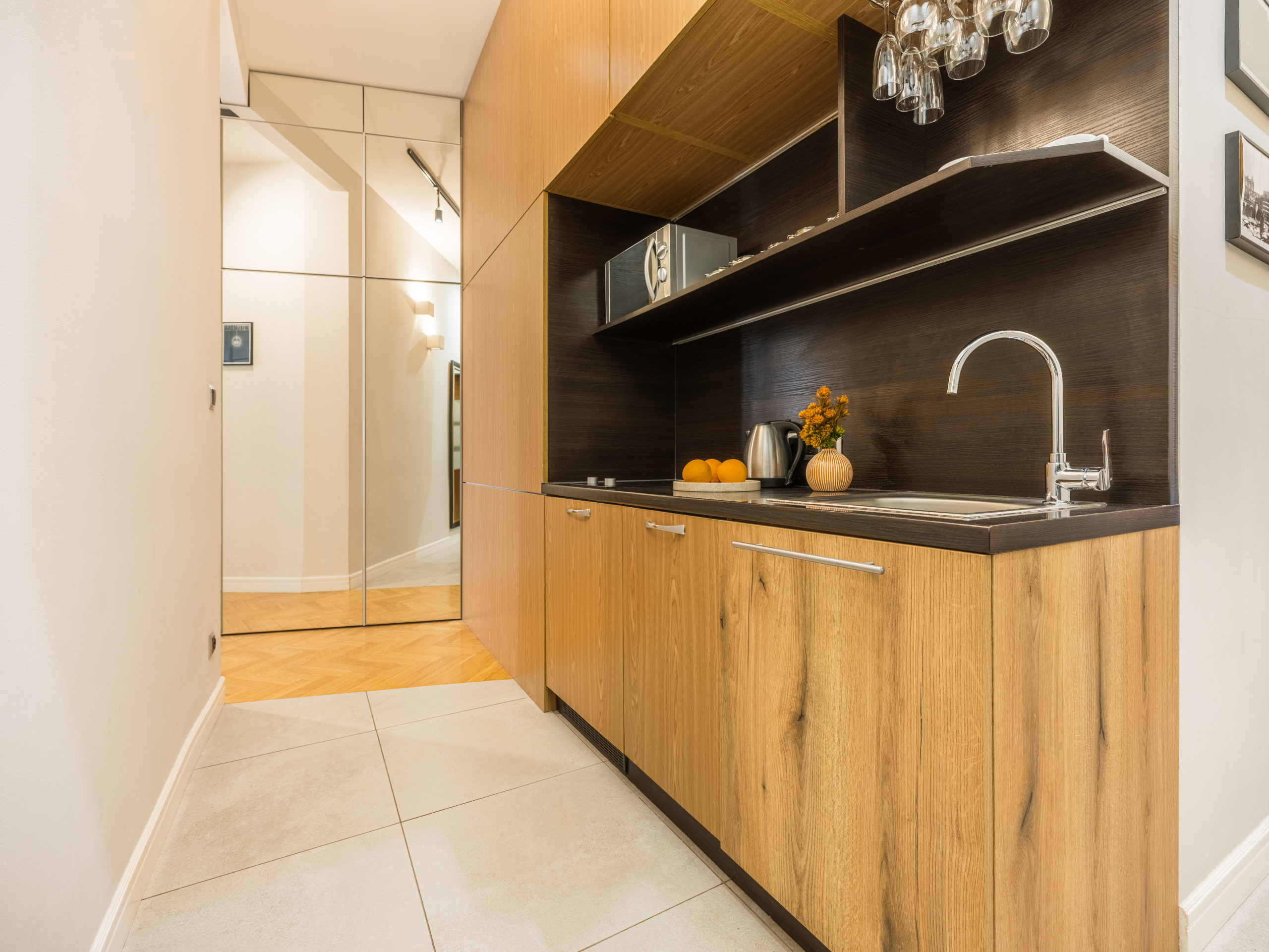 The Phoenix Windowseat is a comfortable and spacious studio, from whose windows you can get a close-up view of the daily life of Krakow. Maintained in elegant shades of gold, beige and gray, it is the perfect base for exploring the city and its surroundings.